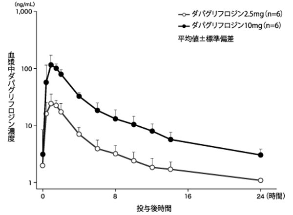 フォシーガの効果はいつからなのか?というと摂取後の約1時間後に血中濃度のピークに達します。