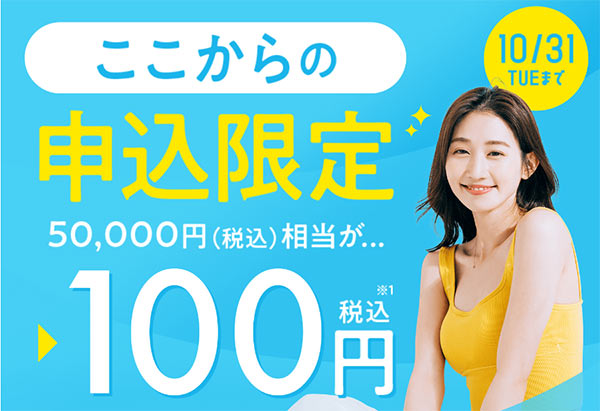 通常だと50,000円相当の内容が今申し込みをすればたったの100円のみでOKです。過去一番といって良いほどの超豪華な脱毛キャンペーン内容になっています。