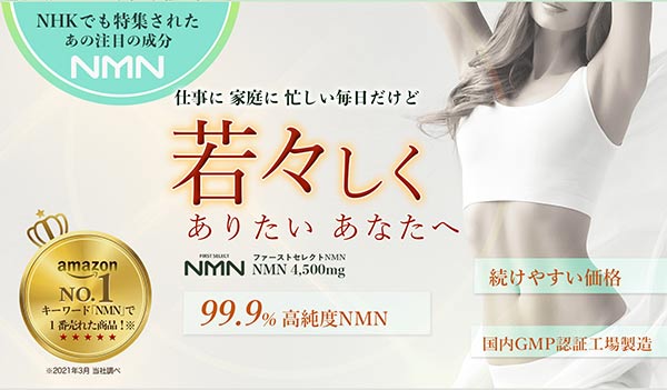 逆に純粋なNMNサプリが良いという方はファーストセレクトNMNを選ぶのが良い選択と言えます。男性の方もこちらがおすすめです。